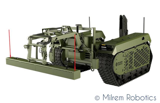 CNIM Systèmes Industriels a développé une solution d’ouverture d’itinéraire basé sur la plateforme THeMIS de MILREM Robotics afin de répondre aux besoins de sécurisation des convois militaires sur le théâtre d’opérations.
